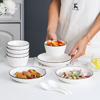 唯铭诺(WEIMINGNUO)碗碟套装陶瓷餐具套装日式简约黑线碗盘碟筷家用 26头钻石套装