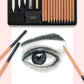 马可(MARCO)素描铅笔炭笔绘图19件套雷诺阿系列专业美术2B/4B/6B/9支绘画工具套装铁盒装300119C美术写生