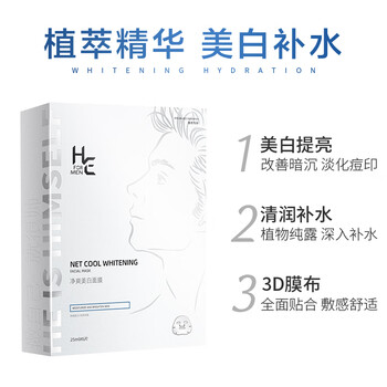 赫恩(H&E)男士美白提亮补水面膜30片*25ml/片(焕颜亮肤 淡化痘印 面膜贴)