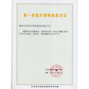 医疗器械注册证编号或者备案凭证编号 湘长械备20140073号