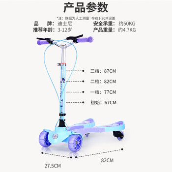 迪士尼(Disney)儿童蛙式滑板车6-14岁中大童可折叠踏板车冰雪奇缘划板车加宽四轮