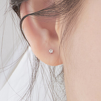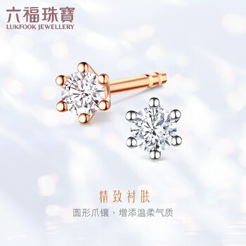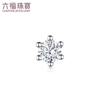 六福珠宝 18K金钻石耳钉(单只)生日礼物女 共5分/白18K/约0.16克-白色