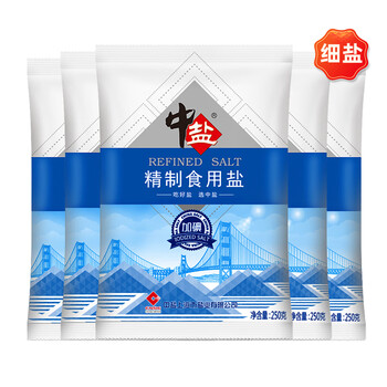 中盐 精制食用盐250g*5【加碘 井矿盐】家用细盐 炒菜调味 中盐出品