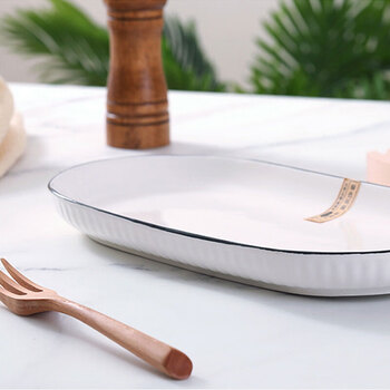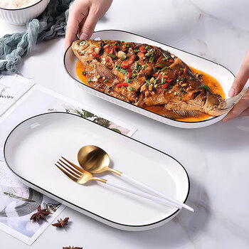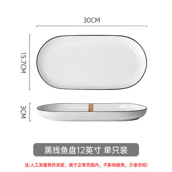 纯白黑线鱼盘 12英寸 单只装
