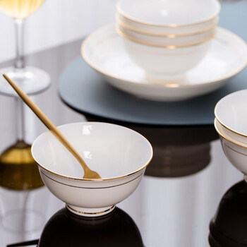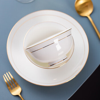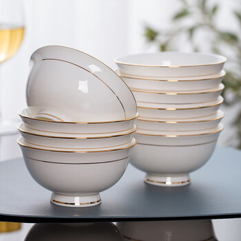 陶相惠 陶瓷饭碗4.5英寸汤碗家用餐具骨瓷防烫高脚米饭碗10只套装微波炉