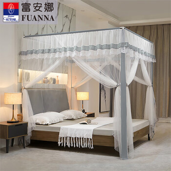 富安娜 时光 落地蚊帐加粗加厚支架三开门1.8x2米床【加密蚊帐易拆装】