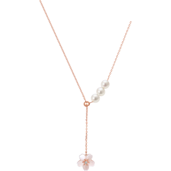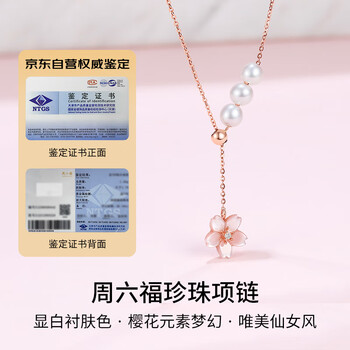 周六福18K金珍珠项链女樱花母贝彩金项链生日礼物X067962约40+5cm