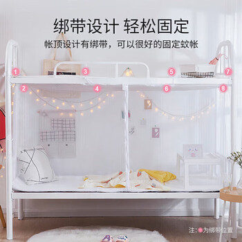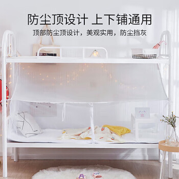 雅鹿·自由自在学生蚊帐宿舍 方顶蚊帐 双开门 0.9米床 白色【上下铺通用】