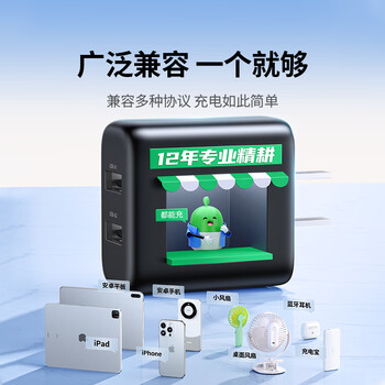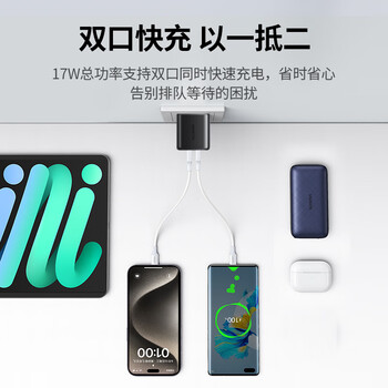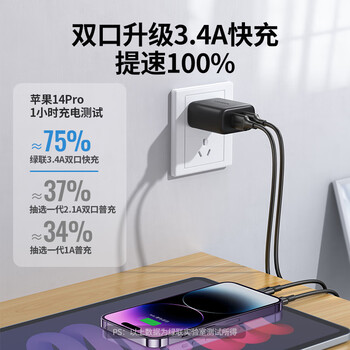 绿联充电头多口快充USB插座头双口3.4A充电器5v1a/2a适用iPhone17/16/15/14华为小米安卓手机手表平板