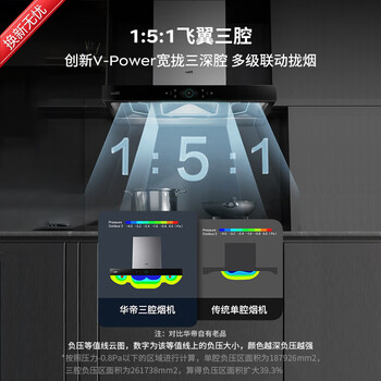 华帝抽油烟机 官方欧式顶吸三腔大吸力油烟机 23风量低噪挥手智控自动清洗脱排油烟机一级能效 i11178