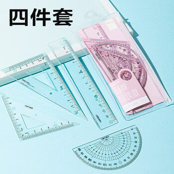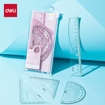 得力(deli)学生考研文具高考中考考试绘图套尺(直尺*1+三角尺*2+量角器*1)套装 尺子