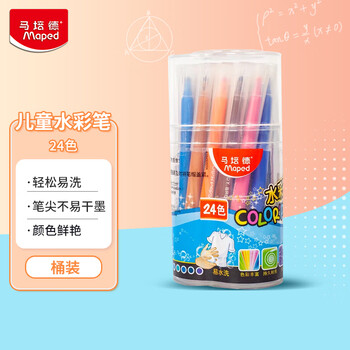 马培德(Maped)可水洗水彩笔 幼儿学生绘画彩色笔 初学美术彩绘涂鸦画笔 845050CH【24色/桶装】儿童美育礼物