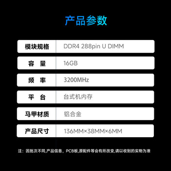 金百达(KINGBANK)16GB DDR4 3200 台式机内存条 intel专用条 黑爵