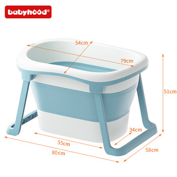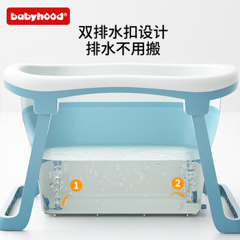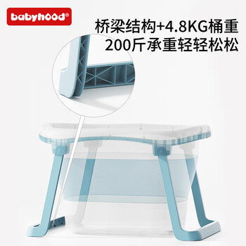 世纪宝贝(babyhood)儿童泡澡桶 婴儿洗澡盆游泳桶加大号折叠浴桶0-15岁赠浴凳 319蓝