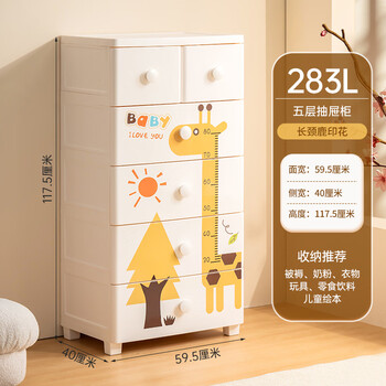 禧天龙儿童收纳柜客厅储物柜简易衣柜五斗柜抽屉式置物柜整理柜 5层小鹿
