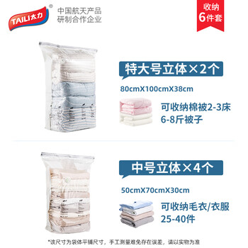 太力免抽气真空压缩袋收纳棉被衣物整理袋 【立体套装6件套】