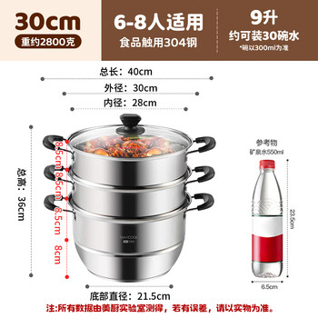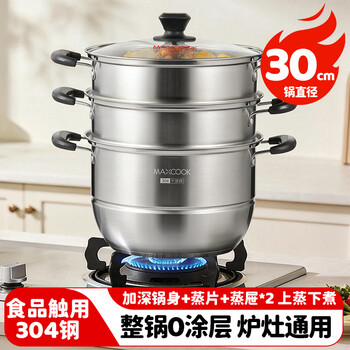 美厨(maxcook)304不锈钢蒸锅 30CM汤锅 三层大容量加厚复底