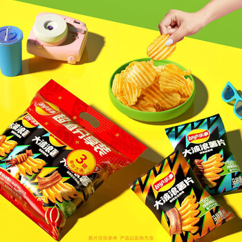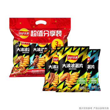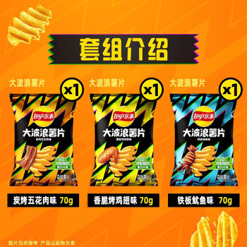 乐事(Lay's)薯片 (鱿鱼+烤翅+五花肉) 70克*3包 大波浪组合包 零食大礼包