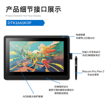 Wacom数位屏 手绘屏 15.6英寸电子绘画屏 数位板 手绘板 手写板连电脑 新帝Cintiq绘画板DTK1661K0F