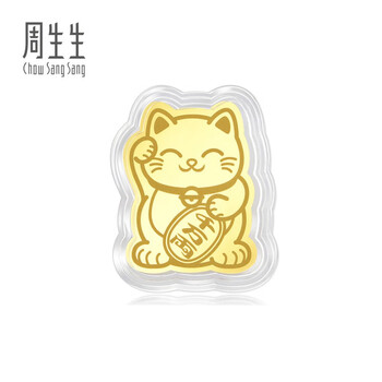 周生生Au999.9黄金压岁钱金片 招财福猫手机贴90877D