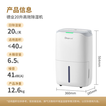 德业(Deye)除湿机/抽湿机 除湿量20升/天 40㎡家用轻音地下室干燥除潮吸湿器干衣机 手机智控 DYD-W20A3