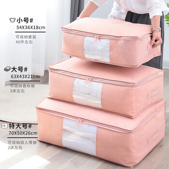 百草园 收纳袋 衣服棉被子整理袋收纳包2特大2大2小珊瑚粉搬家打包袋
