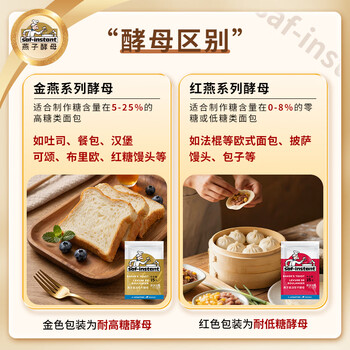 燕子(SAF INSTANT) 烘焙原料 金装 高活性即发干酵母粉 500g 耐高糖发酵快