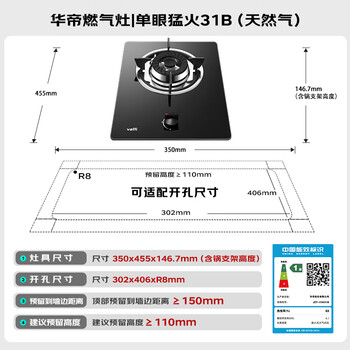 华帝燃气灶家用单灶头 台式嵌入式 4.1kW易打理钢化玻璃面板双灶台灶具i10031B【天然气产品】