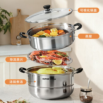 苏泊尔SUPOR 蒸锅真味鲜不锈钢双层复底28cm蒸鱼锅汤锅蒸笼EZ28BS05