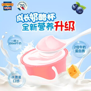 百吉福(MILKANA) 儿童成长奶酪杯芝士 混合口味(原味/草莓/蓝莓/香蕉)100g*4盒