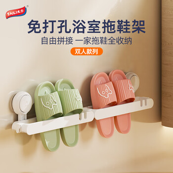 太力卫生间拖鞋架免打孔门后浴室上墙置物架收纳拖鞋挂架壁挂沥水架