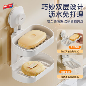 太力 肥皂盒壁挂式卫生间香皂盒免打孔吸盘置物架可沥水双层