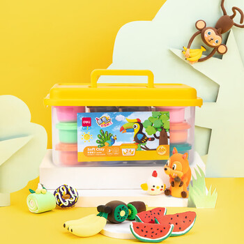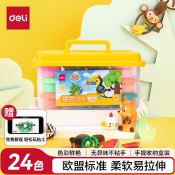 得力(deli)(deli)24色超轻粘土 玩具黏土彩泥橡皮泥美术手工DIY制作太空沙收纳箱 生日儿童开学文具