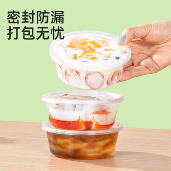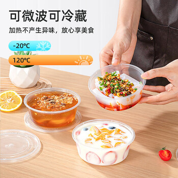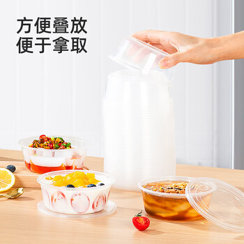 特美居(temeiju)一次性碗带盖50套300型透明饭盒圆形餐盒加厚可微波食品级打包盒