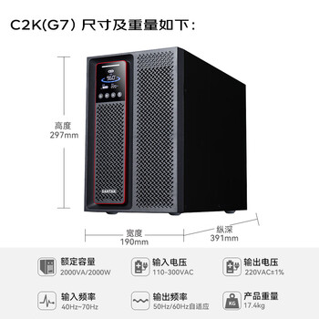 山特(SANTAK)C2K 在线式UPS不间断电源 稳压服务器机房电脑停电后备电源内置电池标准机 2000VA/2000W