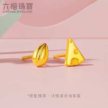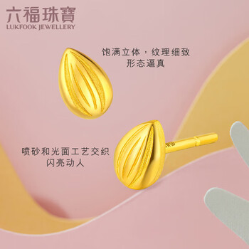 六福珠宝 足金瓜子(单只)黄金耳钉耳环 计价 约0.54克