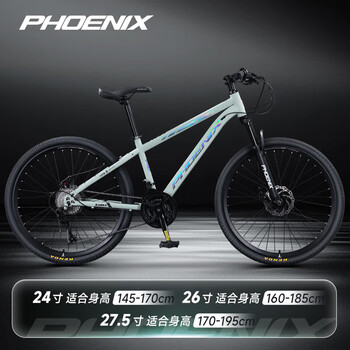 凤凰(Phoenix)山地自行车成人双层铝合金车圈辐条轮26英寸24速 幻影 幻影灰