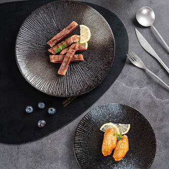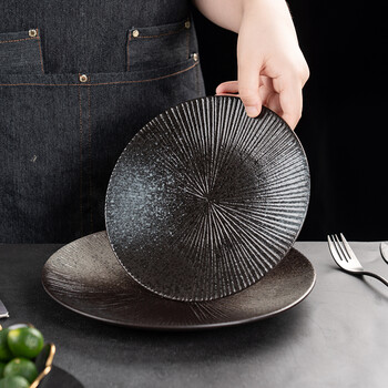 onlycook 日式陶瓷盘子 餐盘西餐盘牛排盘水果盘 复古可微波 10寸黑色