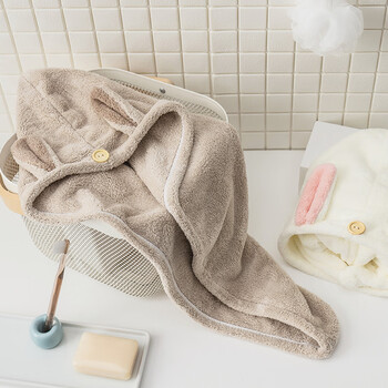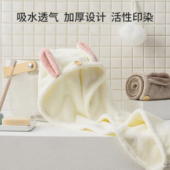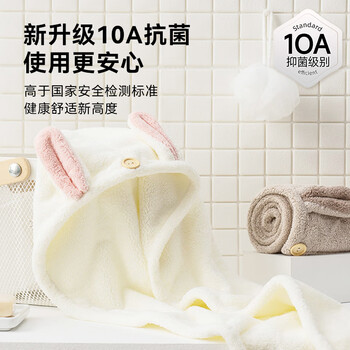 京东京造 加厚干发帽 10A抗菌浴帽 超柔卡通耳饰超强吸水干发毛巾 奶白色