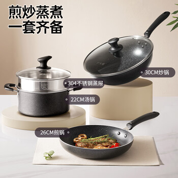 炊大皇锅具套装不粘锅星空麦饭石色炒锅煎锅汤蒸锅电磁炉通用B50052