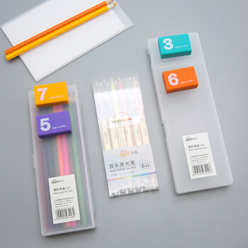 惠朗(huilang)透明磨砂文具盒大号多功能两段式铅笔盒收纳盒7429