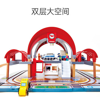 Hape(德国)儿童早教玩具火车轨道声光豪华城市火车站男女孩礼物E3725