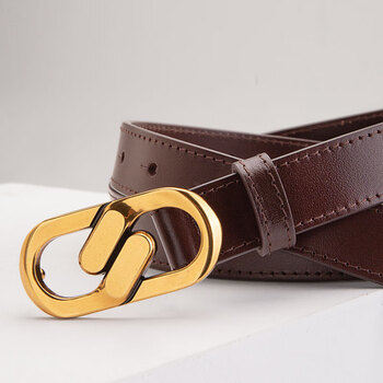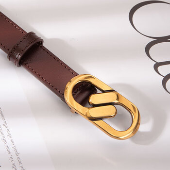 牛当家皮带女士皮带时尚百搭装饰腰带女简约裤带女通勤5370 咖色 95cm