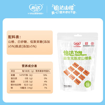 怡达益生元陈皮山楂条90g 0添加防腐剂 山楂干片蜜饯果干零食