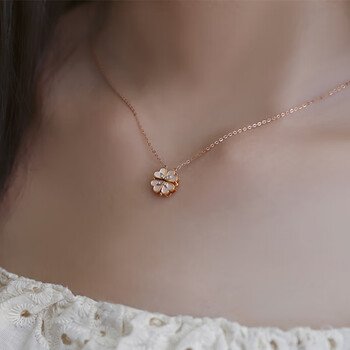 潮宏基仙梦钻石母贝18K金项链女套链通勤送女友生日礼物 约40cm加尾链