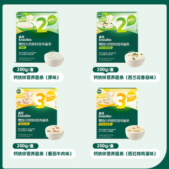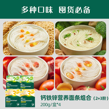 钙铁锌营养面条(原味)200g*1+钙铁锌营养面条(西兰花香菇味)200g*1+钙铁锌营养面条(番茄牛肉味)200g*1+钙铁锌营养面条(西红柿鸡蛋味)200g*1