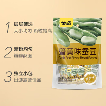 甘源牌蟹黄味蚕豆285g休闲零食品坚果炒货兰花豆瓣办公室小吃独立小包装