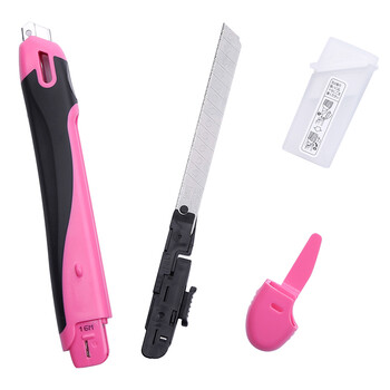国誉(KOKUYO)美工刀小号FLANE安全便携手工刀裁纸刀附刀片收纳盒 办公用品 粉红 1个 HA-S100P