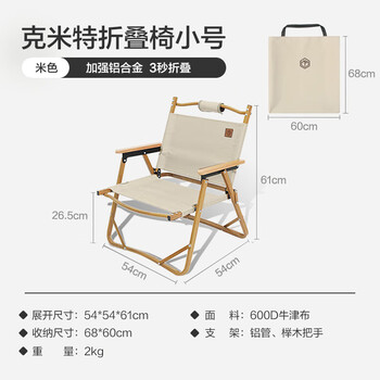 京东京造户外折叠椅 克米特椅便携椅露营椅子野餐铝合金户外桌椅米色小号