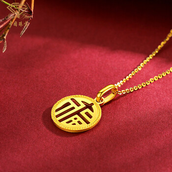 中国珠宝生日礼物送女友黄金项链女足金999国潮国风福牌吊坠送妈妈送老婆